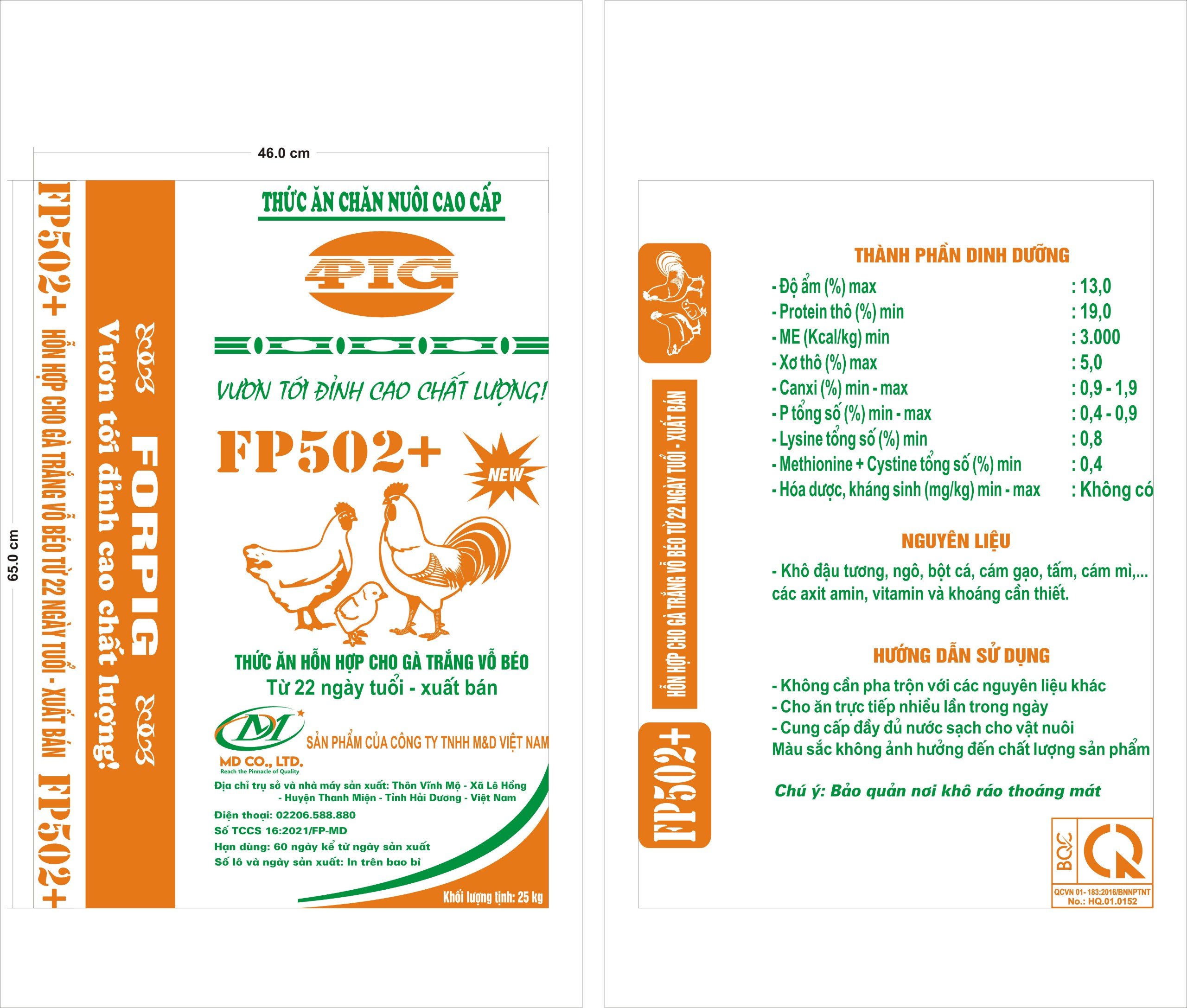 Thức ăn hỗn hợp cho gà trắng FP502+